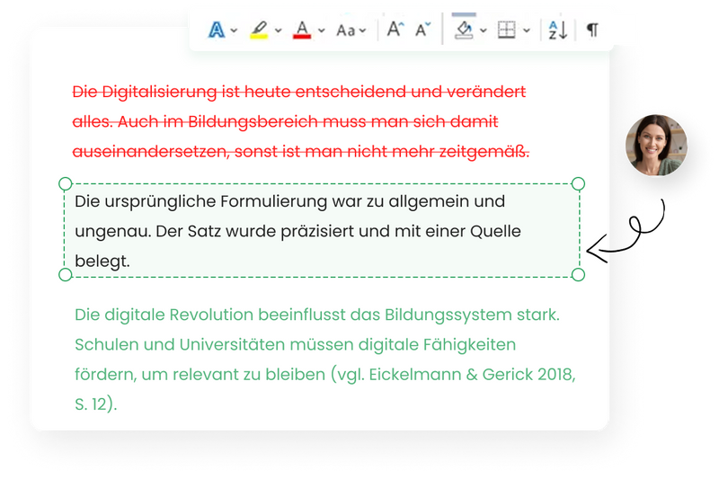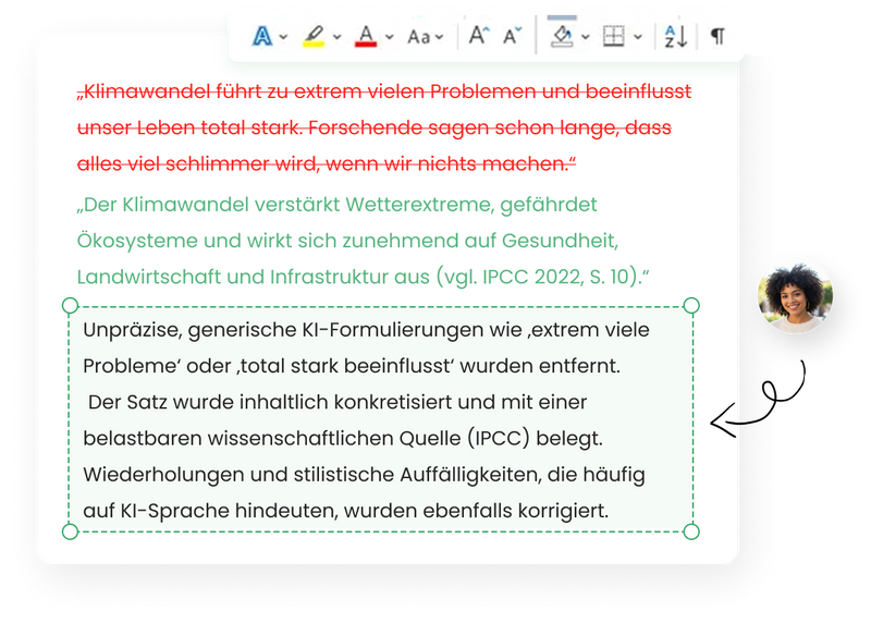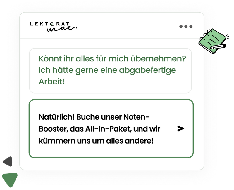 Unser Anspruch ist nicht, Dir nur Hinweise zu geben, die Du selbst umsetzen musst, sondern eine wissenschaftliche Arbeit zu gestalten, die sprachlich präzise, strukturell klar und inhaltlich stark ist.